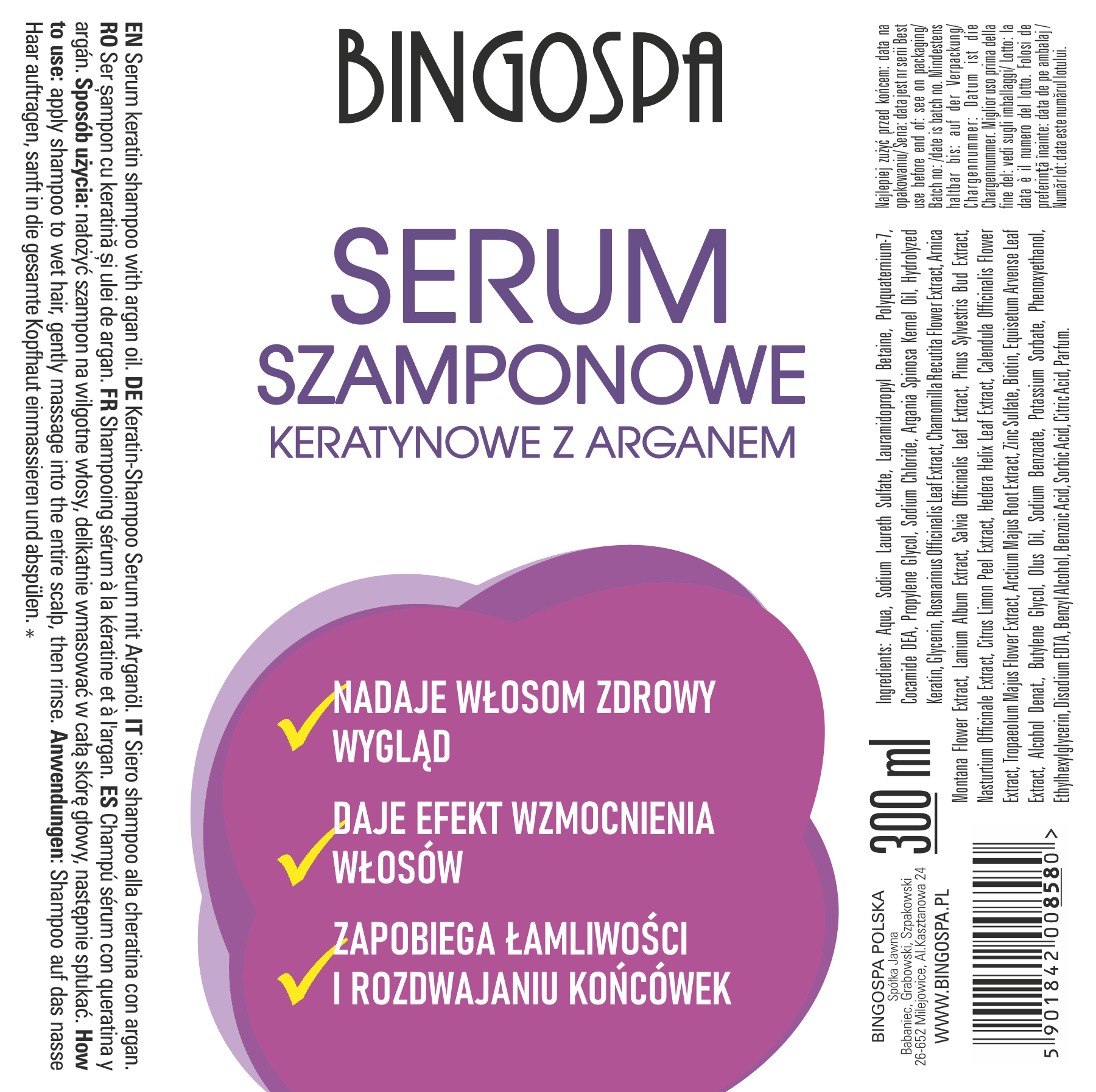 Serum szamponowe keratynowe z arganem 300 ml BINGOSPA