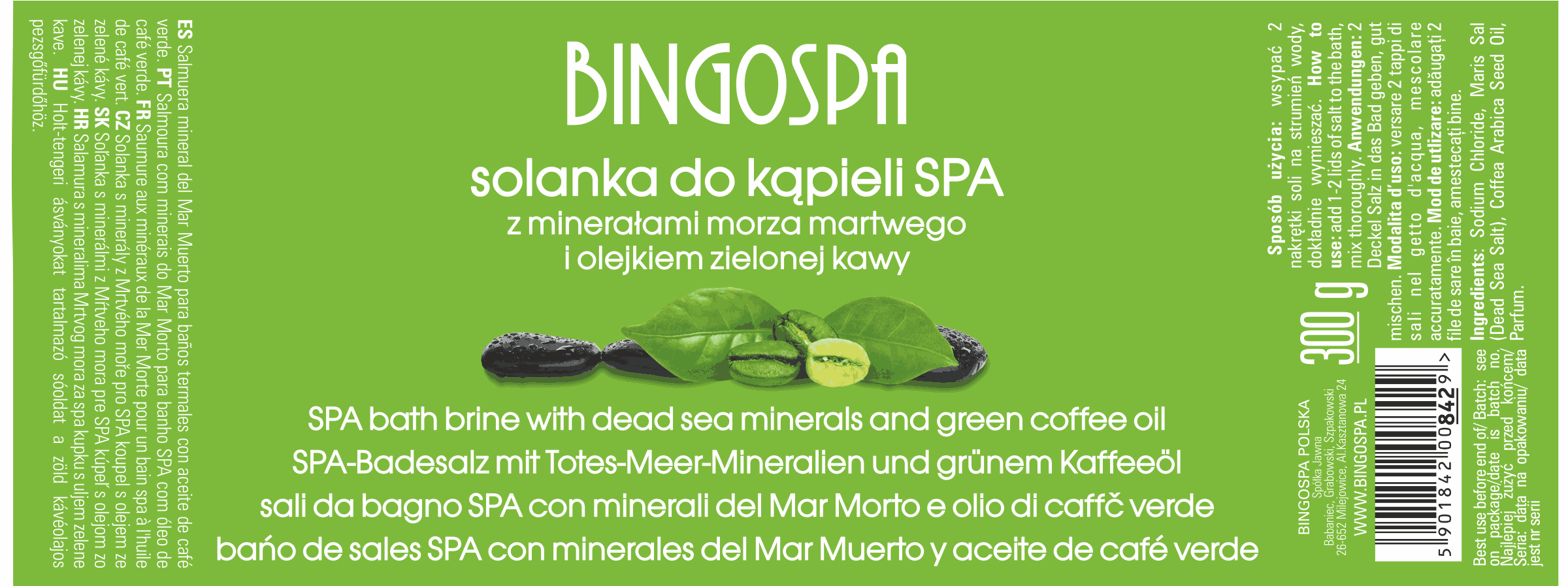 Solanka do kąpieli SPA z minerałmi Morza Martwego i olejkiem z zielonej kawy.