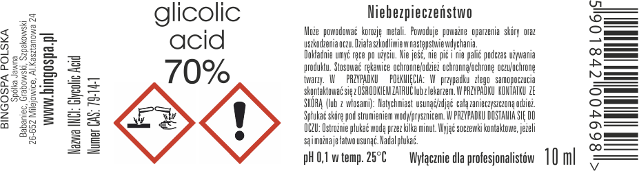 BingoSpa Glycolic Acid 70%. Obtained from the juice of sugar cane (Saccharum officinarum).
