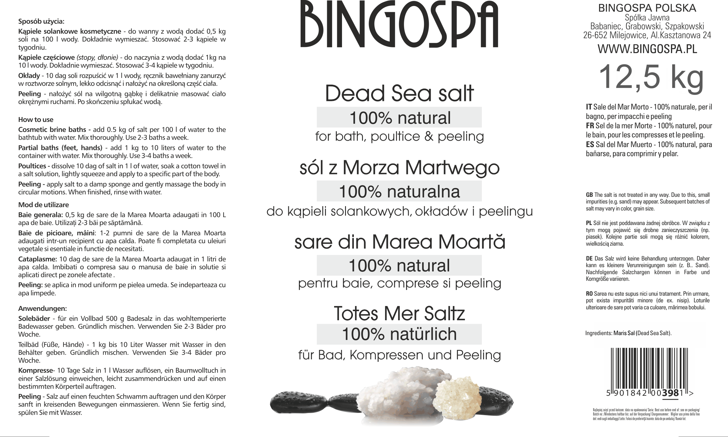 100% naturalna sól z Morza Martwego 12,5 kg BINGOSPA