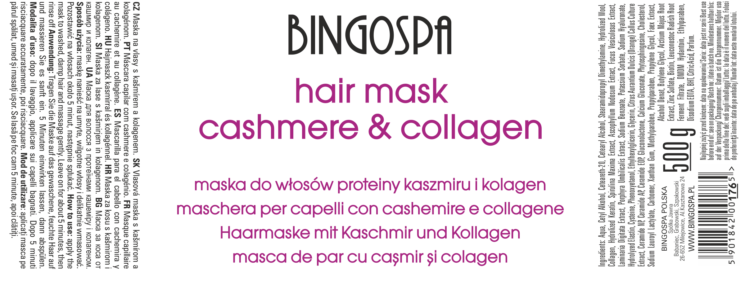 Maska do włosów z proteinami kaszmiru i kolagenem BINGOSPA